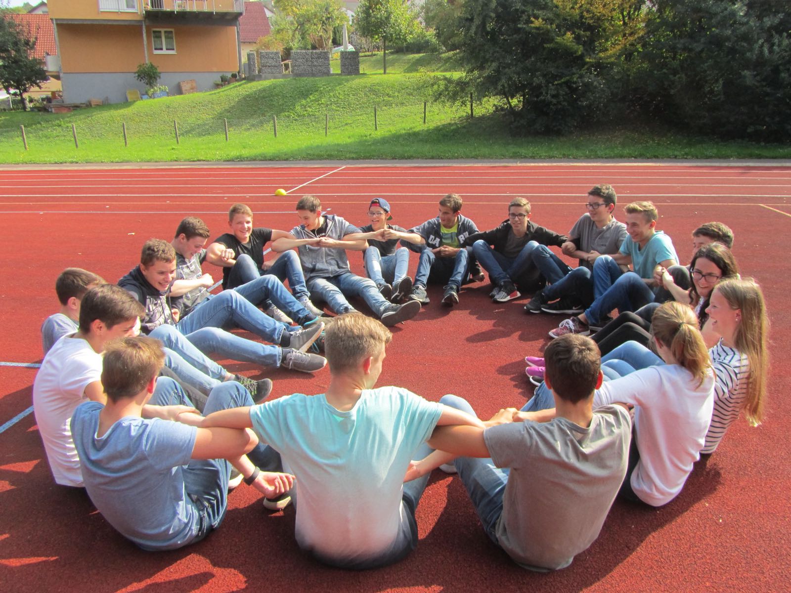 Am 25. September 2017 brachen wir frühmorgends, in Gruppen, nur mit einem GPS-Gerät und Rätseln ausgestattet auf. Unser Weg führte uns über den Kressbachsee zu einem Parkplatz, nahe der Stockensägmühle. Dort angekommen, wurde gegrillt und dann ging es zurück zum Sportplatz des Peutinger-Gymnasiums, wo Frau Schlipf mit uns teambildende Spiele veranstaltete.